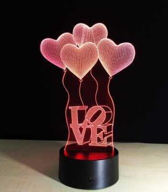 Corazones y Globos – Lámpara holográfica con iluminación óptica 3D
