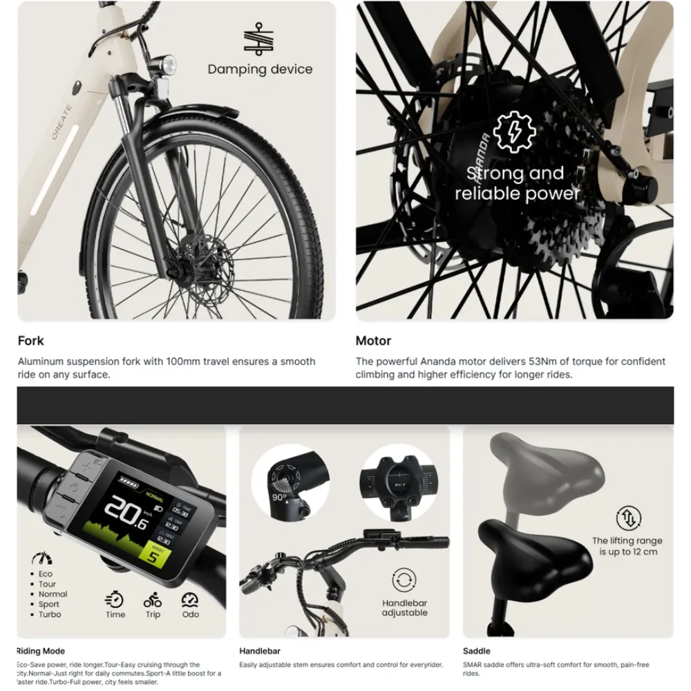 - Par motor: 55 Nm (motor Ananda) para una gran capacidad de ascenso y un rendimiento eficiente.