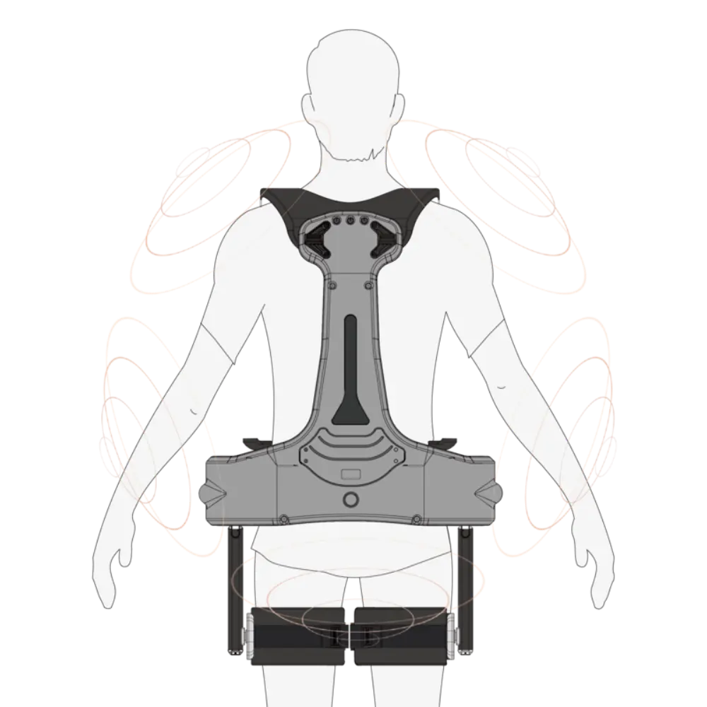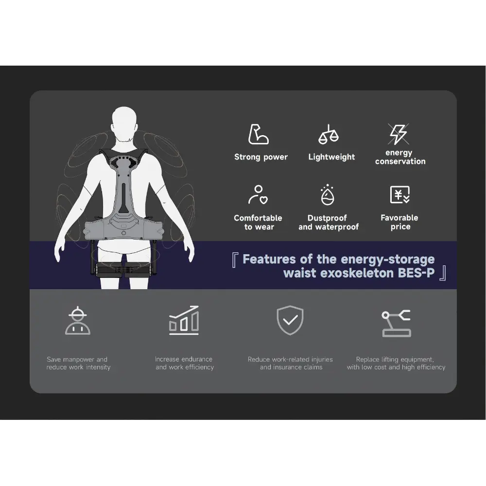 - Tipo: Exoesqueleto de soporte lumbar/de cadera motorizado para elevación industrial