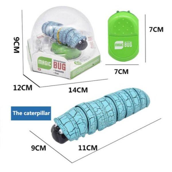 Juguetes con forma de insecto, incluyendo abeja, araña fantasma, mariquita, cucaracha gigante, hormiga gigante y mosca gigante. Imita a los insectos reales en movimiento y forma. Se controla mediante un pequeño dispositivo con tres botones (A, B y C) para avanzar, retroceder y girar. Además del control remoto, también se puede usar el modo de detección de obstáculos; los juguetes siguen el movimiento de la mano. También cuenta con modo de espera. Son muy divertidos y entretenidos; se pueden usar para asustar a la gente, por ejemplo, en una fiesta de Halloween, o para hacer bromas. Son aptos para niños de todas las edades. Además de ser inofensivos, están hechos de plástico. Son fáciles de usar y no requieren esfuerzo para jugar. Basta con pulsar un botón y ¡listo!, a disfrutar de tu juego favorito.