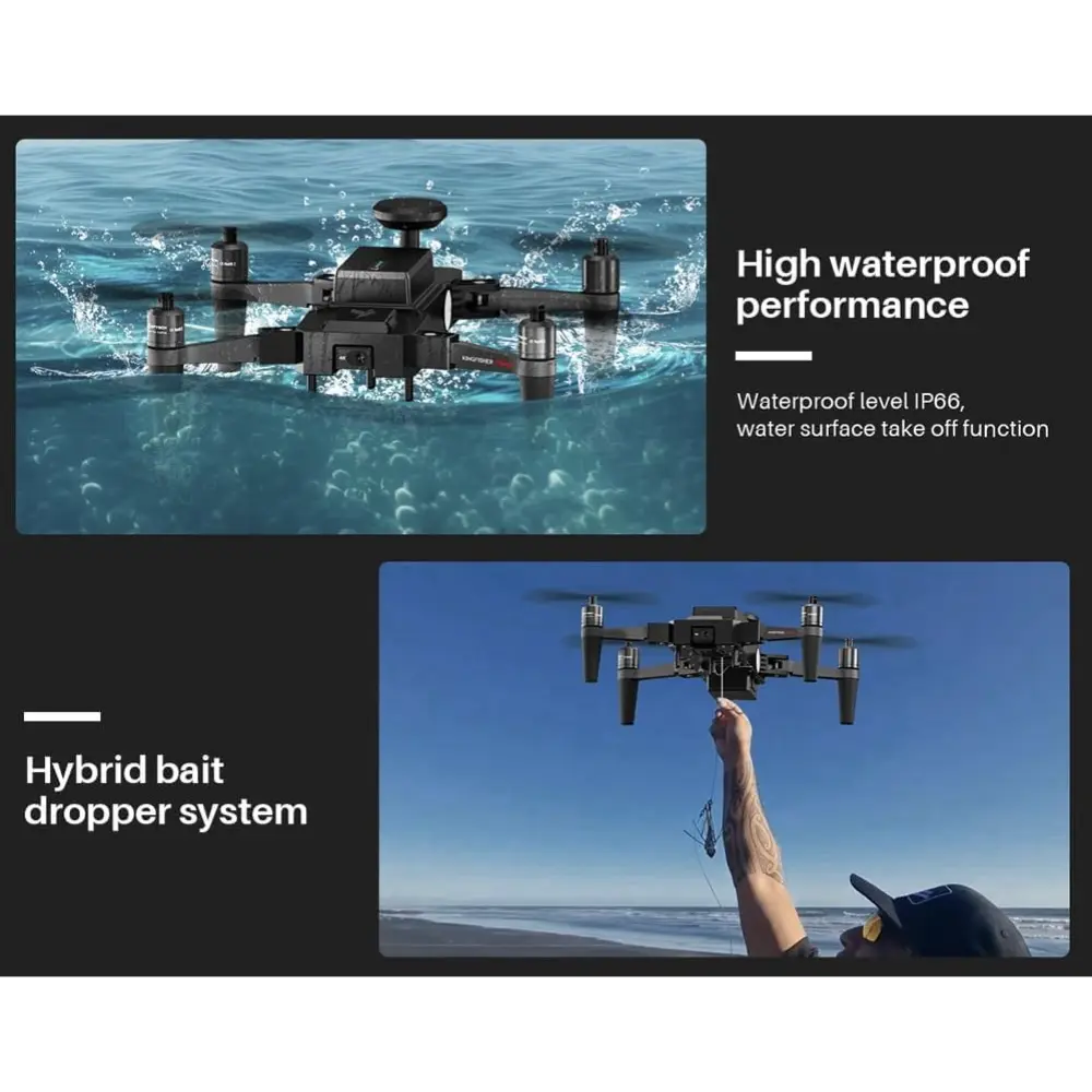 - Características especiales: Lanzamiento automático para pescar, capacidad de despegue desde la playa, operación fácil para principiantes