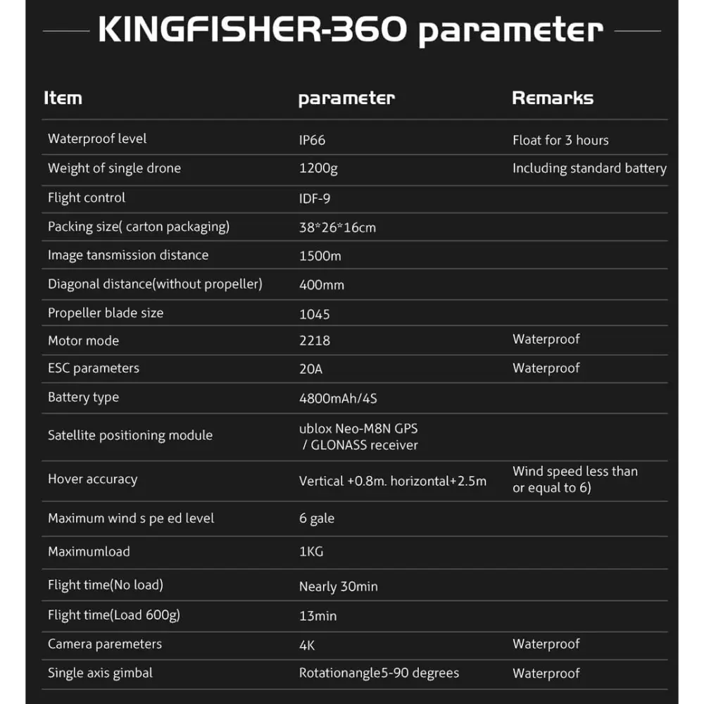 Kingfisher Dron de Pesca con Cámara 4K y Cebo de 1 kg – Presupuesto