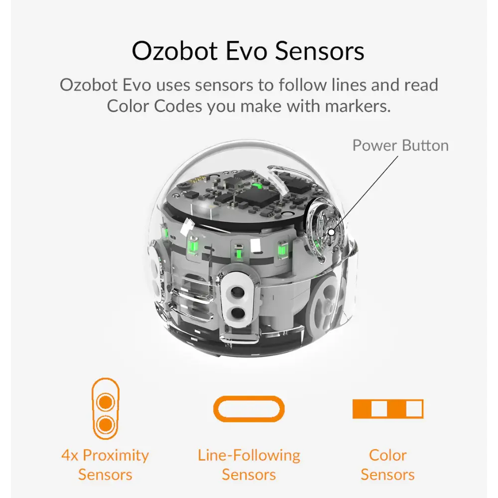 El Ozobot Evo Kit de Iniciación a la Robótica Educativa es un paquete de robótica STEM para principiantes, diseñado para que la programación sea accesible, atractiva y divertida para estudiantes de todas las edades. Es un kit de robótica educativa que introduce a estudiantes, profesores y padres al mundo de la programación y el aprendizaje STEAM sin necesidad de experiencia previa. En su núcleo se encuentra el robot Evo, un dispositivo de bolsillo repleto de tecnología que se puede programar de dos maneras versátiles. Los estudiantes pueden usar Ozobot Blockly, un editor de programación visual con cinco niveles de habilidad, desde principiante hasta experto, u optar por la programación sin pantalla con marcadores especiales Color Code. Este enfoque dual garantiza que los estudiantes no solo comprendan los fundamentos de la lógica de programación y la depuración, sino que también conecten conceptos abstractos con un juego práctico y tangible. El kit incluye todo lo necesario para empezar de inmediato: un robot Evo, 5 marcadores Color Code de doble punta, un cable de carga, una funda protectora con cremallera y acceso a más de 700 lecciones STEAM gratuitas. Estas lecciones integran la robótica en asignaturas como matemáticas, ciencias y arte, lo que lo hace ideal tanto para el aula como para el aprendizaje en casa. Diseñado para un profesor y uno o dos alumnos, el Kit de Inicio Evo fomenta la creatividad, la resolución de problemas y el pensamiento crítico, a la vez que prepara a los alumnos para un futuro impulsado por la tecnología. Con su curva de aprendizaje estructurada, crece con el alumno, favoreciendo la progresión desde el nivel principiante hasta el avanzado en programación. El Evo Kit de Iniciación es más que un simple robot: es una herramienta educativa completa que combina diversión, interactividad y habilidades para el futuro en un paquete compacto.