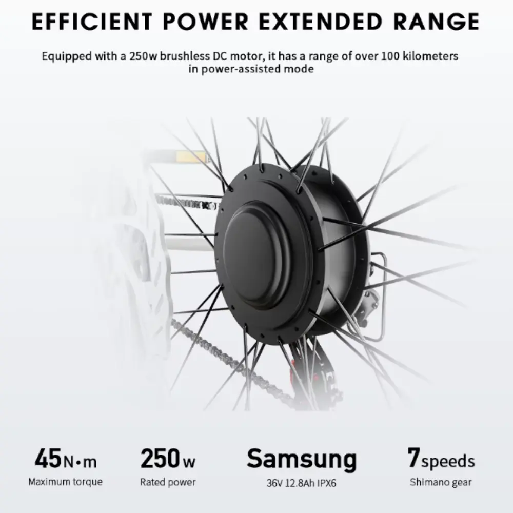 • Motor: Motor de buje trasero BAFANG de 250 W