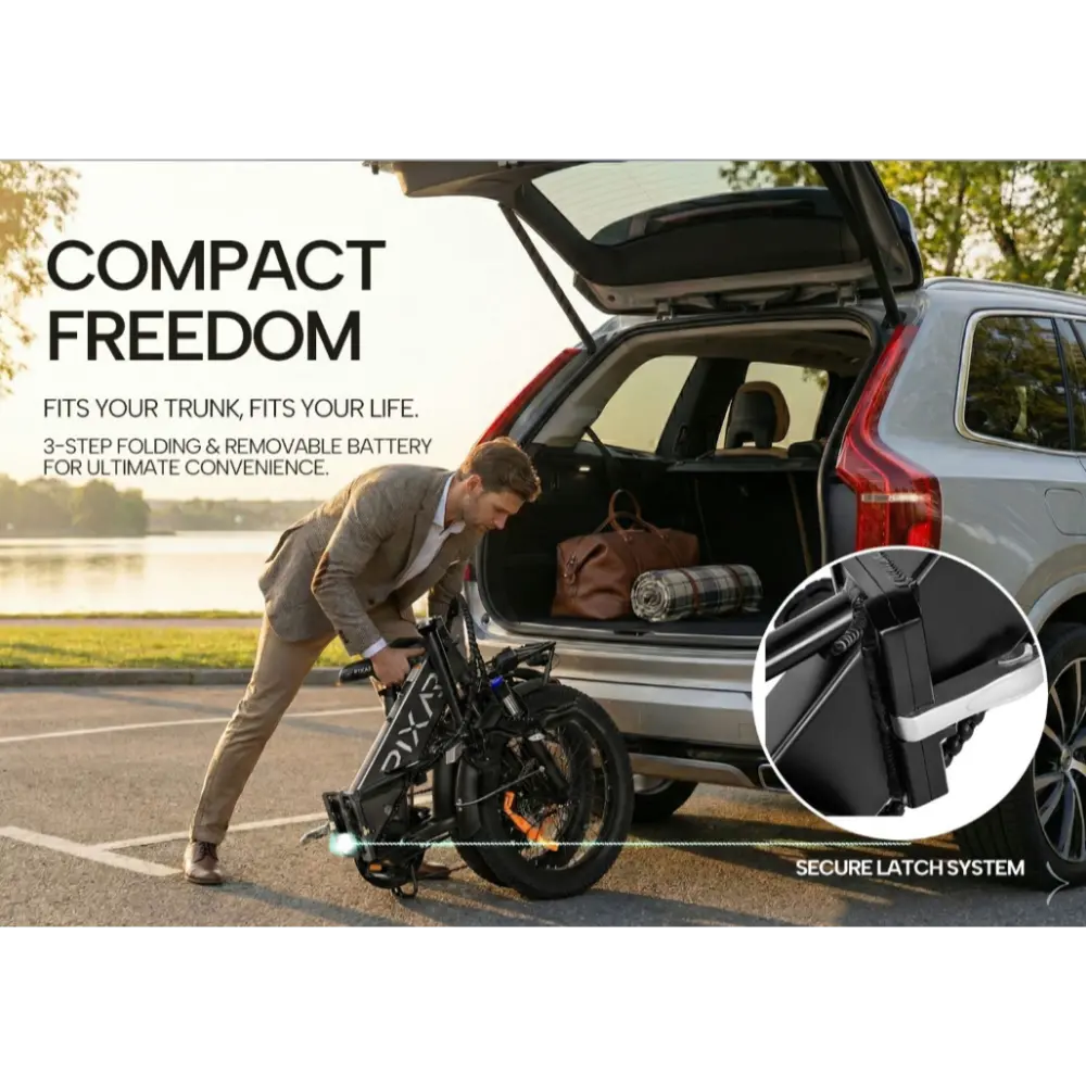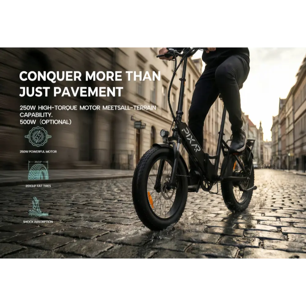 La PIXAR WIND1 Bicicleta Eléctrica Plegable está diseñada para ciclistas que buscan portabilidad sin sacrificar el rendimiento. Su ligero cuadro plegable la hace perfecta para quienes se desplazan a diario, viven en apartamentos y viajan y necesitan una ‑solución de movilidad que ahorre espacio. A pesar de su tamaño compacto, la WIND1 ofrece una potencia impresionante gracias a su motor sin escobillas de alta eficiencia de 500 W, que proporciona una aceleración suave y un par fiable para calles urbanas, pendientes y trayectos diarios. Este motor se complementa con una batería de iones de litio de 48 V de larga duración, diseñada para unrendimiento excepcional. Dependiendo del modo de conducción y el terreno, la WIND1 puede recorrer cómodamente largas distancias con una sola carga, lo que la hace ideal tanto para trayectos cortos como para escapadas de fin de semana. El sistema de ’gestión inteligente de la batería ayuda a mantener una mayor vida útil y una salida constante, garantizando un rendimiento fiable en cada trayecto. Los ciclistas apreciarán el asiento ergonómico, el sistema de ‑doble freno de respuesta rápida y los neumáticos estables que brindan seguridad en diversas superficies. Con múltiples modos de asistencia, puedes alternar fácilmente entre el pedaleo manual, la asistencia al pedaleo y la propulsión totalmente eléctrica para adaptarla a tu ritmo y al entorno. Elegante, práctica y diseñada para la movilidad moderna, la PIXAR WIND1 destaca como una opción inteligente para un transporte ecológico con una gran utilidad en el día a día.