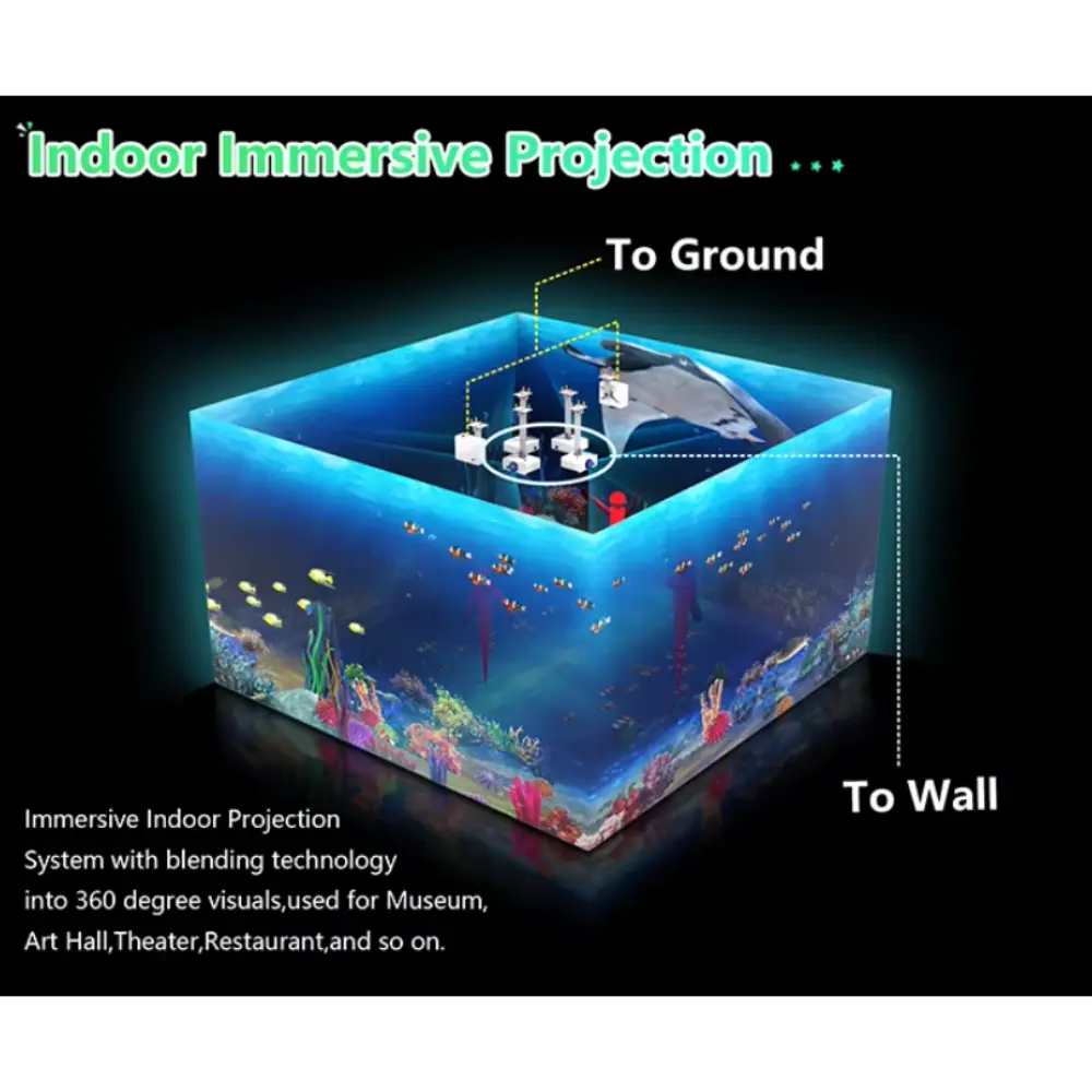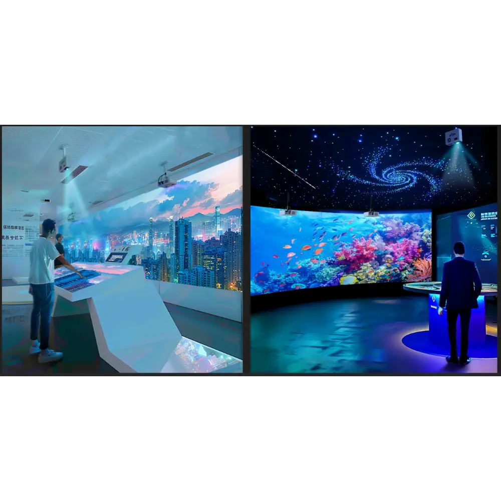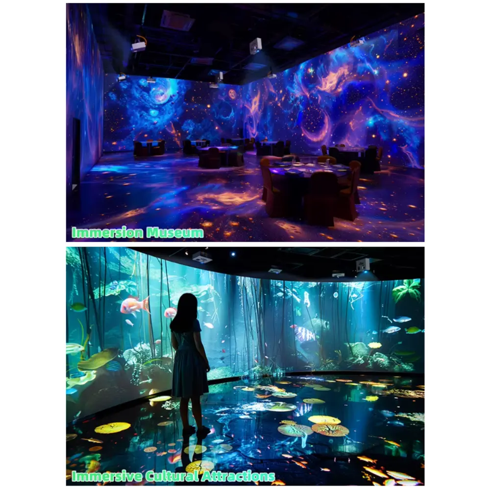 El Sistema de Proyección Inmersiva para Salas con Visuales de Alta Definición es una solución innovadora que transforma espacios cerrados en entornos dinámicos e interactivos. Ideal para museos, centros educativos, recintos de entretenimiento y experiencias de marca, este sistema utiliza proyectores de alta resolución y reproducción multimedia sincronizada para envolver paredes, suelos y techos con imágenes de 360°. Es compatible con plataformas Android y Windows, ofreciendo una integración de contenido flexible y control remoto. La configuración de proyección puede incluir múltiples temas, como escenas submarinas, efectos artísticos de partículas o simulaciones interactivas de la naturaleza, permitiendo a los usuarios interactuar con el entorno mediante el movimiento o el tacto. El sistema incluye un proyector de alto lumen, un servidor multimedia y accesorios de montaje, con opciones para instalación en pared, techo o colgante. Con una resolución máxima de hasta 3840×2160 y compatibilidad con interacción gestual, ofrece una experiencia profundamente inmersiva. Esta tecnología es especialmente popular para salas de meditación, aulas y activaciones promocionales, donde el impacto visual y la conexión emocional son clave.